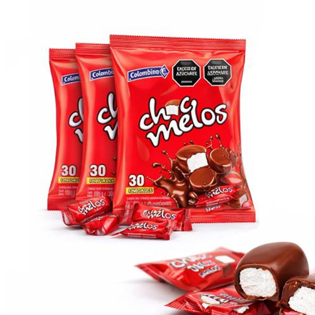Los Chocmelos Colombina combinan un suave marshmallow sabor vainilla con una capa de chocolate que los envuelve perfectamente, logrando una textura equilibrada entre esponjosidad y cremosidad. Cada bocado ofrece una experiencia dulce y reconfortante, ideal para quienes disfrutan de los clásicos de siempre.
