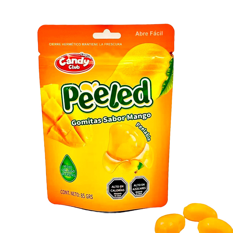 Gomitas Peeled Sabor Mango suaves y ricas con un formato muy entretenido que simula una experiencia casi fantástica al comer capa por capa los gajos.