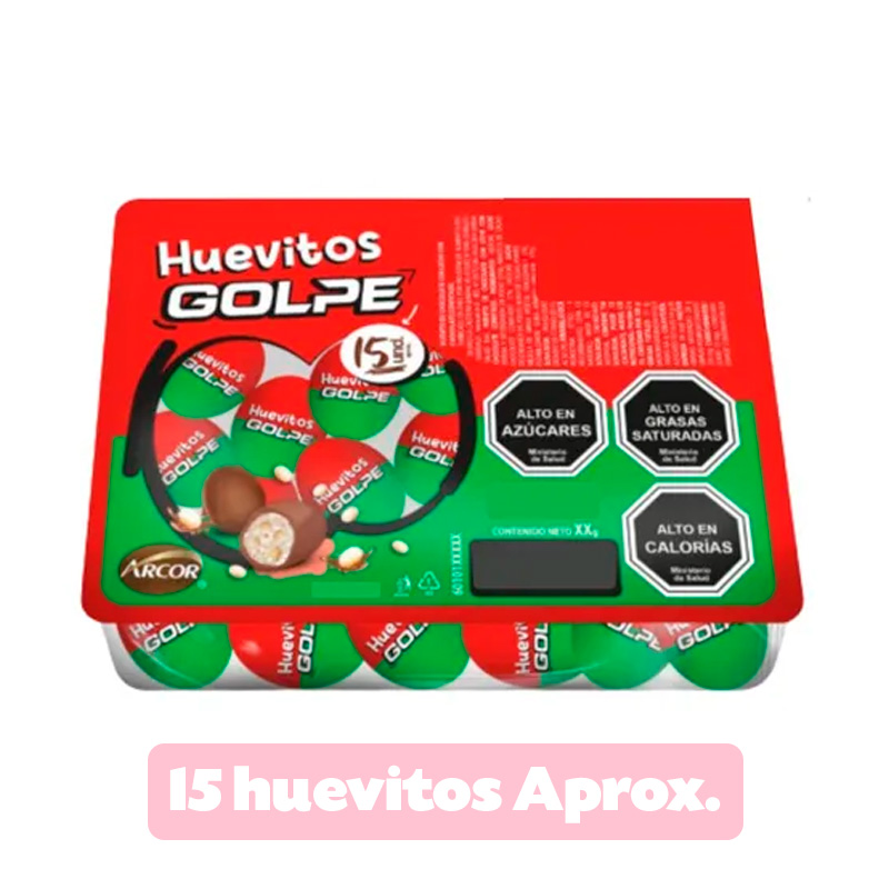 Disfruta el sabor clásico del chocolate con los Huevitos Golpe de Arcor, una deliciosa opción para celebrar momentos especiales y compartir en familia. Esta práctica bandeja contiene 15 huevitos de chocolate, elaborados con un sabor suave y una textura agradable que los hace perfectos para grandes y chicos.