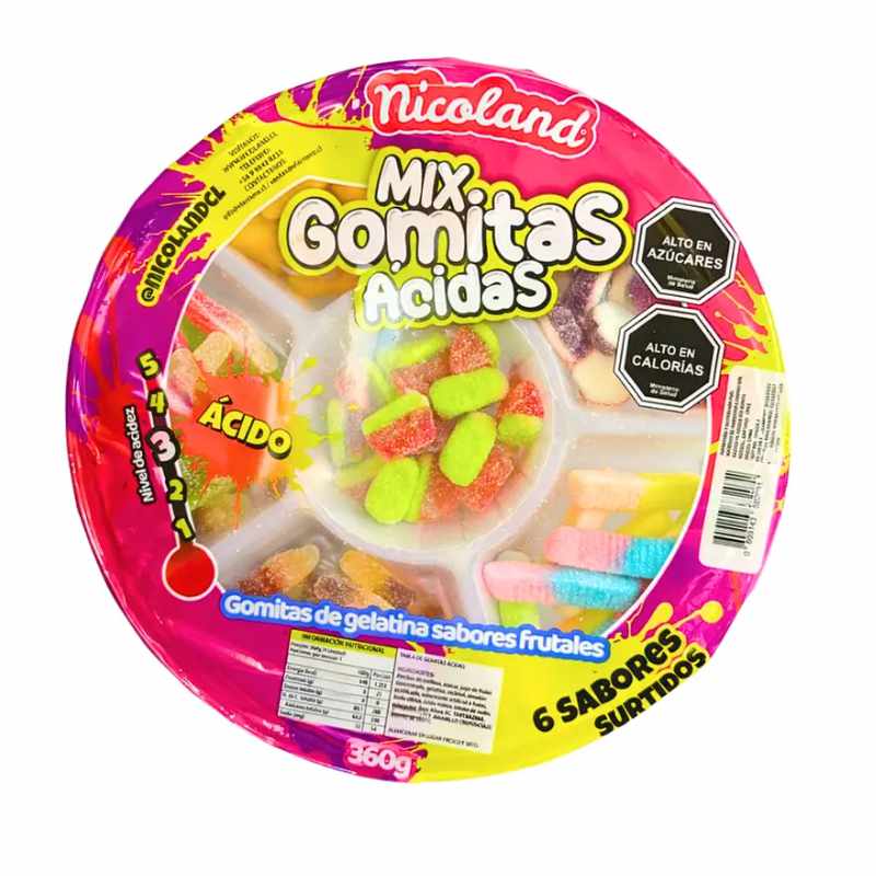 Prepárate para un golpe de sabor con el Mix de Gomitas Ácidas Nicoland, una tentadora selección de gomitas de gelatina con intensos sabores frutales y un punto ácido que estimula el paladar desde el primer bocado. Cada sección del mix ofrece una variedad distinta, ideal para compartir, disfrutar solo o poner a prueba tu tolerancia a la acidez.
