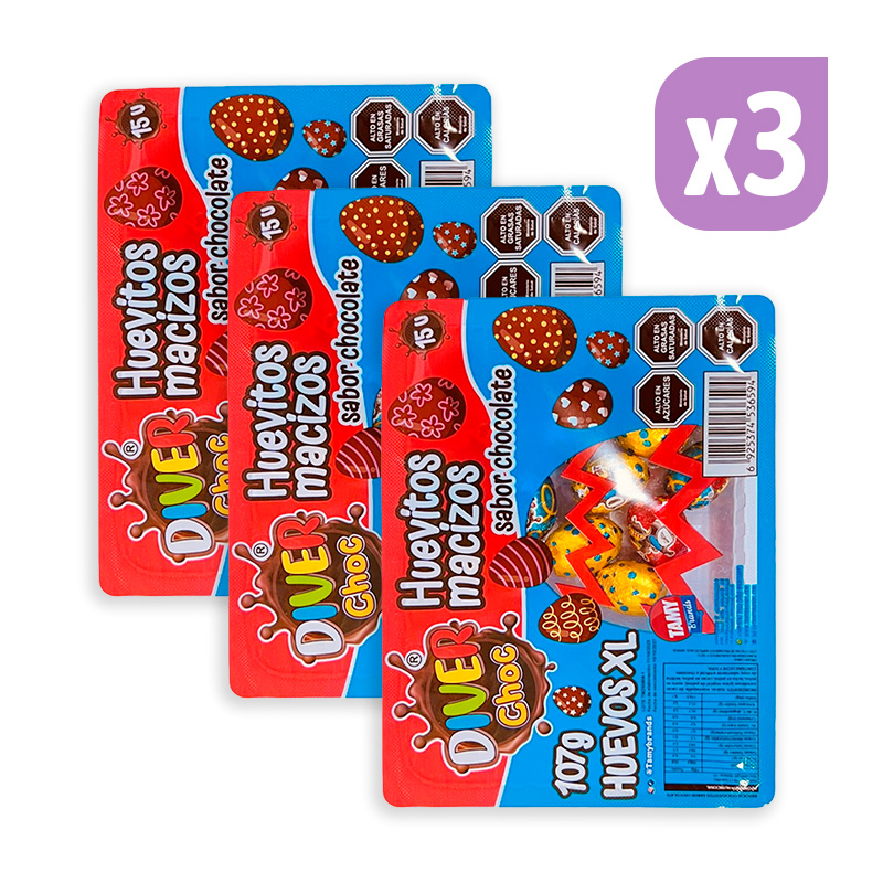 Pack Huevitos Macizos XL 107g x3 Bandejas Diver Choc