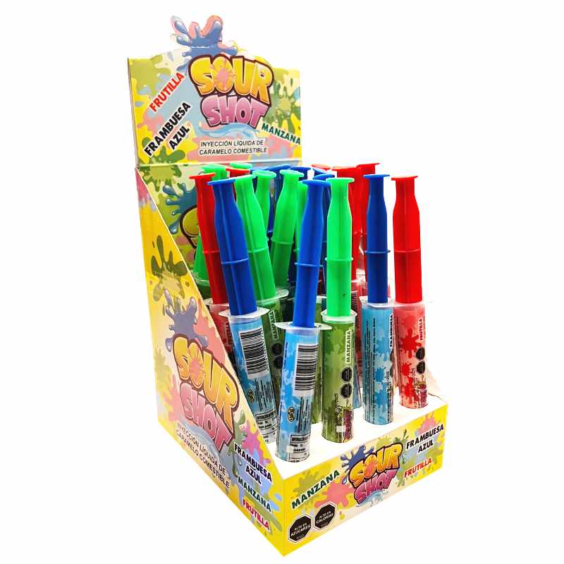Sour Shot es un caramelo líquido lleno de intensidad, diseñado para quienes disfrutan los sabores frutales potentes con una nota ácida que despierta los sentidos. Su consistencia líquida y su formato práctico lo hacen perfecto para disfrutar donde y cuando quieras.